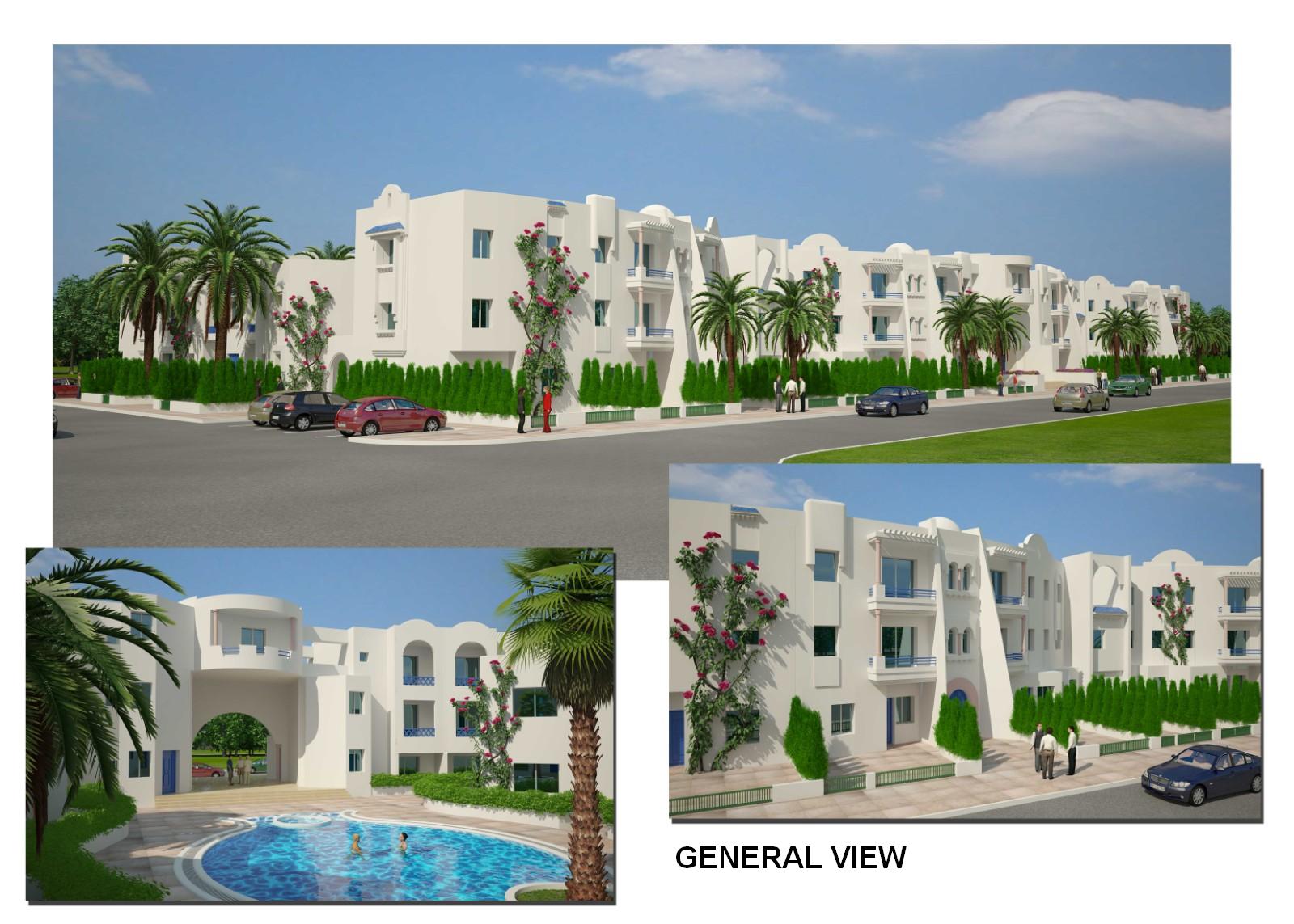 Jinen Beni Khiar is a modern residential complex situated on the beautiful coastline of Beni Khiar. The small village of Beni Khiar is situated near the historical and tourist towns of Nabeul (4km) and Hammamet (14km) from there with very good connections to the north (Tunis airport 65km, Carthage 60km) and the south of Tunisia (Sousse 90km, Monastir 110km, Mahdia 120km, etc.)