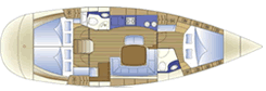 - 4 cabins with 8 berths plus saloon or 3 cabins with 6 berths plus saloon;